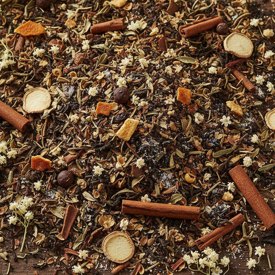 This tea brings a gentle sense of warmth, comfort, and emotional uplift. Honeybush and vanilla help soothe and relax you, creating a naturally calming effect. Orange peel adds a bright, refreshing note that can lift your mood, while ginger, cinnamon, and allspice warm the body and support digestion—perfect for easing tension or settling after a long day. Elderflower adds a soft wellness boost, traditionally used to support the immune system.